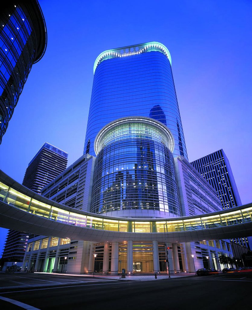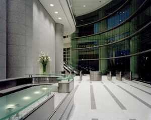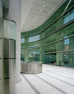 Design of the base building tower and tenant fit out includes Public Lobbies, Elevator Lobbies, Trading Floors, Typical and Executive Office Floors, Cafeteria/Servery, Auditorium and Conference Center. The second floor features a unique circular sky bridge that interconnects it with its 1300-car parking garage and a neighboring building.